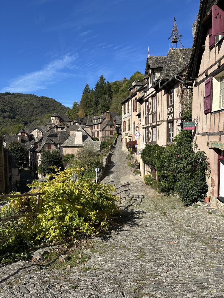 Conques√, 贝壳路重要一站。小村孔克斯修道院教堂1840年被列为历史古迹,1998年作为法国贝壳路(Chemins de Saint-Jacques-de-Compostelle*)一部分列为UNESCO世遗。相当古朴漂亮,村两边入口都有停车场。