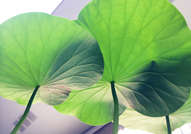 用手机从荷叶底下往上拍的仰视角,那微微透着光的叶脉,本身就是光影绝妙的构图~