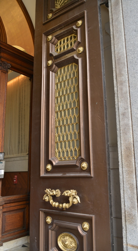 费城银行这座大楼建于1857-59年,原本是为宾州银行建的,但是应为1857年的恐慌,没成功,后来由费城银行来完成。这座前门是由铸铁做成。内部的重新装修一直到1983年才完成。