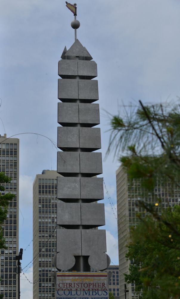 Penn’s landing 现在是个很大的河边娱乐场所,打乒乓,推球什么的,不得不说费城的城市实施真的很不错。非常人文。河边还有吊床。小孩子爬在上面沾沾仅仅的,但是又很开心。这是附近的哥伦布纪念碑,用来纪念哥伦布发现新大陆的精神。