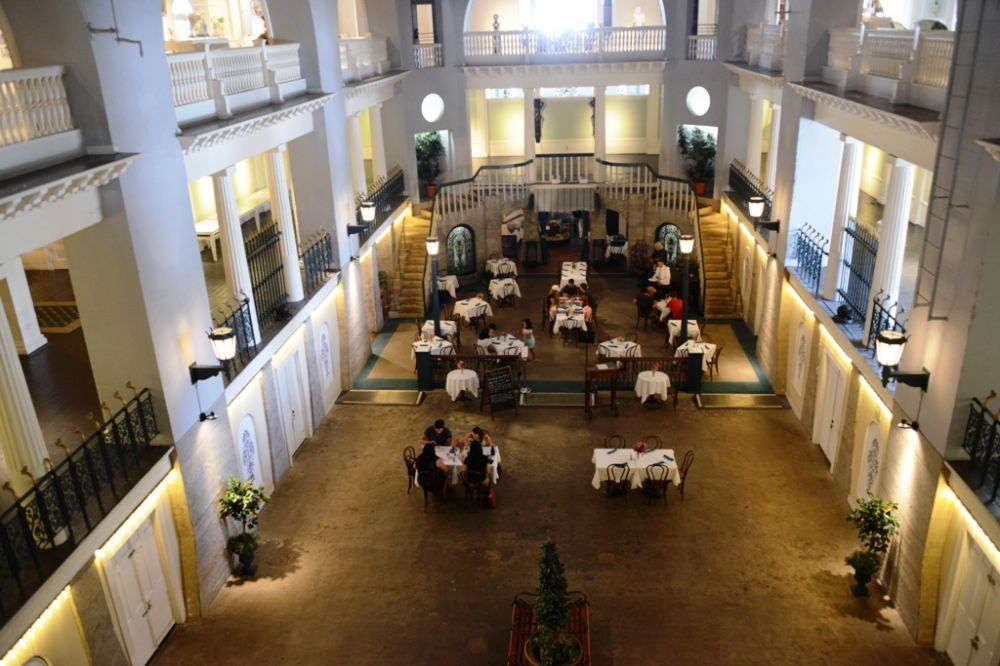 这次在古城吃得有一家餐厅非常的特别,这家原来是个是当年最大的室内游泳池,后来改成了餐厅,对了说的就是the lightern museum(原Alcazar Hotel,建于1888年)的游泳池咖啡厅Cafe Alcazar
