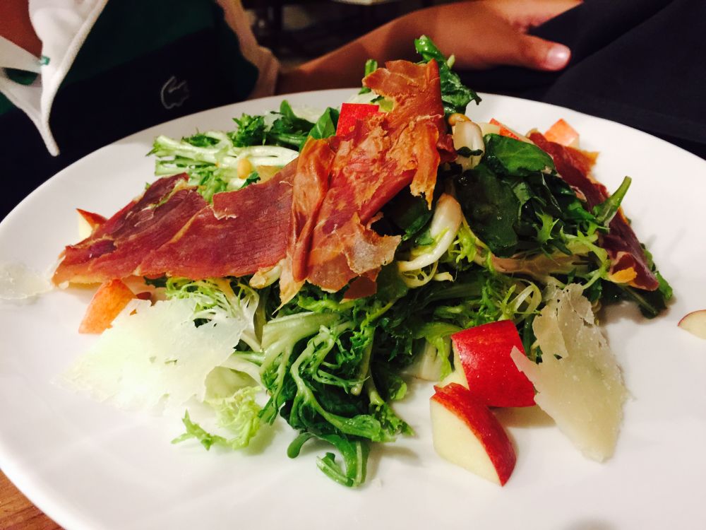 香煎马头鱼,口感细腻。做法一点不影响鱼本身的味道,能吃到鱼本来的甜味。八爪鱼也是带着本味的咸再加上salad verde的酱汁,口感一下子就复杂起来。后来几天都叫了这个。不得不提,这家餐馆就连小孩子的套餐里的薯条都是良心制作,松脆香还不油腻。我们晚上就叫了做宵夜下酒[跑游泳池吃。赞一个。