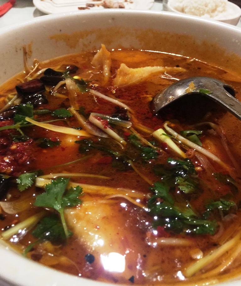 自从Yale附近一家中国店吃过烤羊肉串以后,两个小的都喜欢上了,这次看到菜单上有,就点了,不过肉太厚,不够入味。不过那个沸腾鱼香做了真不错,花椒够麻,够辣。鱼片也嫩。空心菜也炒了不错,由炉气。