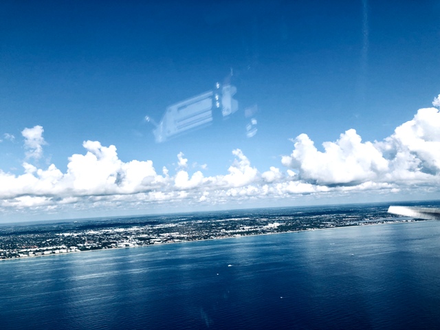沿海的风景很漂亮,到了外海教练就让我开始操纵驾驶杆。我第一次拉了太猛,一下子爬了很高,吓的我直叫,后来几次,慢慢手感上来了,爬高,和盘低就有点分寸了