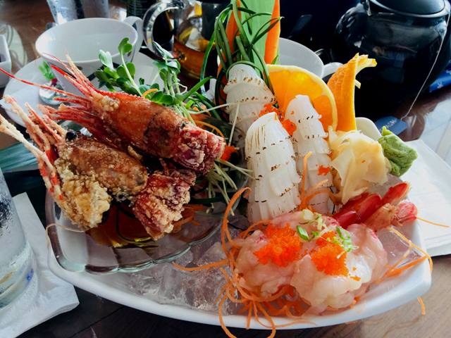 我叫的甜虾和墨鱼,墨鱼稍微烤了一下,相当弹牙。