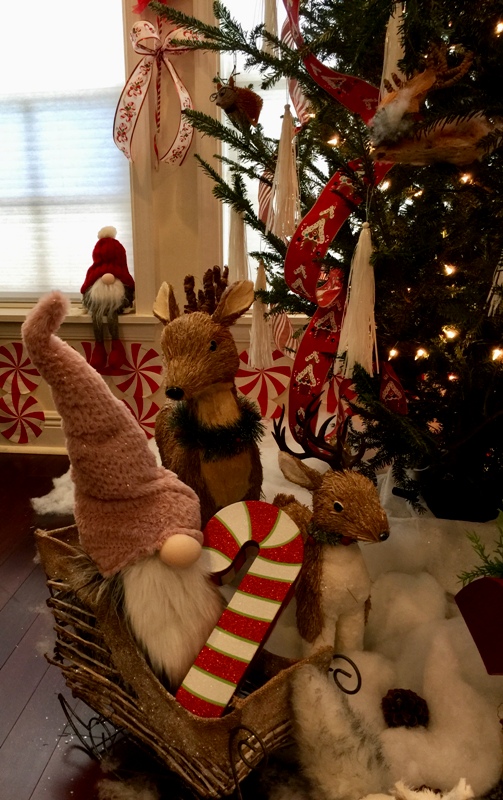 圣诞树买了也是历年来最小的一棵。这次圣诞树主题是candy wonderland.所有的装饰都是和糖果有关。背景是姜饼屋。树下铺了雪,和小动物。树上挂的是小动物。