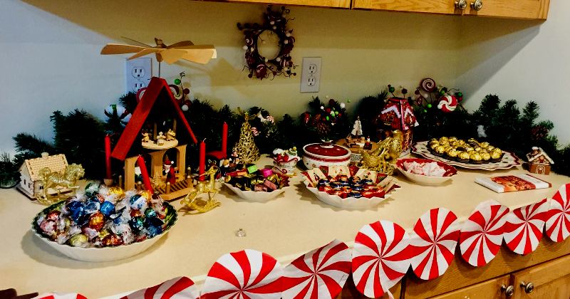 真正的candy land,是在客厅和其他房间当中,所有既有糖果的装饰,也有金色的小物件。