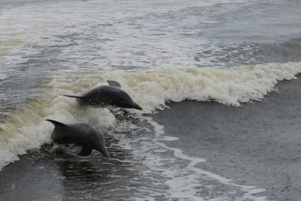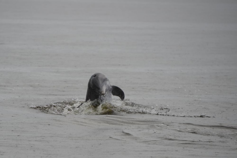 开出去没多久,就看到海豚群,可能刚刚下过雨,海豚们特别活跃,嬉打玩耍,好不快活。