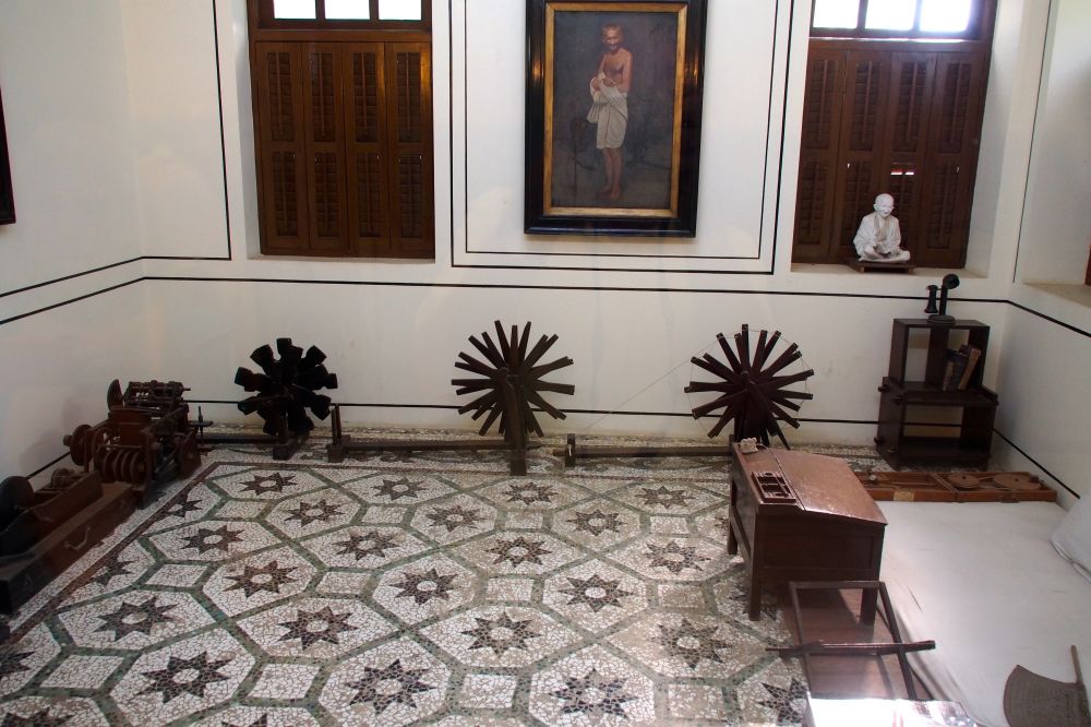 圣雄甘地的卧室.他所有的财产就是一个手工纺车,一个拐杖.一双拖鞋.如果我没来这里,我可能从来不会去思考,甘地这种绝食抵抗能够最后胜利,也是由于对手有着人类文明的底线.如果甘地的对手是德国法西斯,那么会怎样呢?