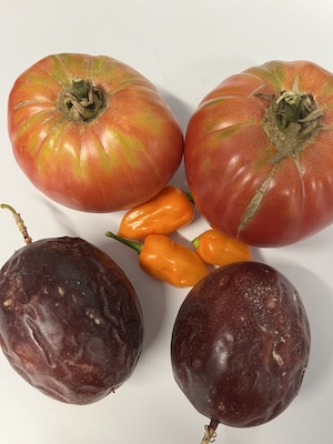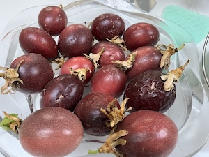 巧的是,我的教练今天也送给我一些院子里的产物,其中包括两个百香果。 :)