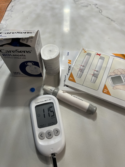 前些日子用CGM来监控血糖体验不是太好,现在买了传统的血糖仪,用起来麻烦一些,但应该比较准确,它是抽毛细血管的血的。 CGM并非抽血。别问我,我也不知道它抽的是什么。 我以前从来没有用过传统的血糖仪,看说明书,看油管,费了半天劲才得到了生平第一次非CGM血糖值。 用这个仪器测出的血糖值比上一个CGM(Freestyle Libre 3 plus)测出的值要高很多,我宁愿相信这个传统血糖仪。