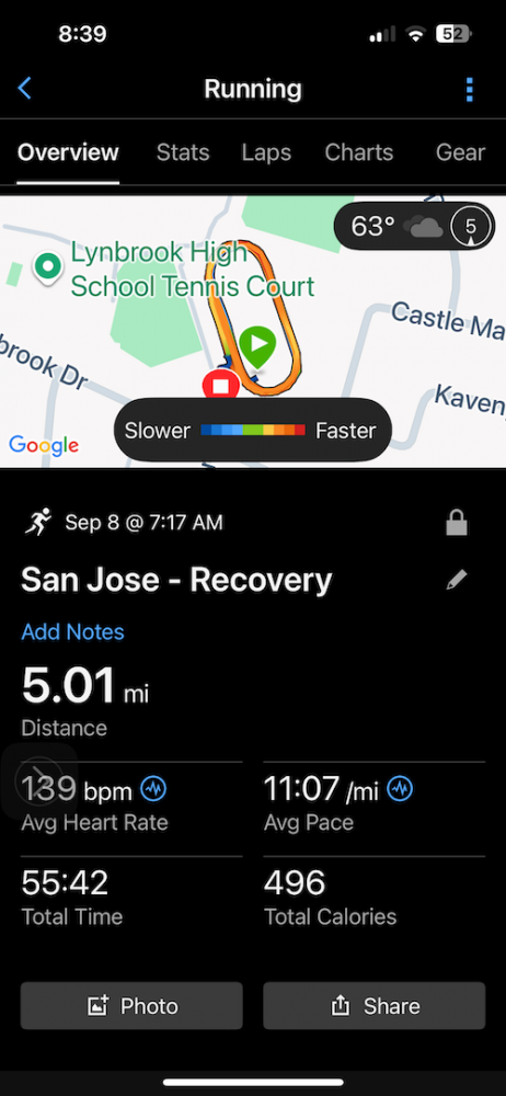 今天刚刚开始跑就在高中的操场上撞见几个跑友,跟着他们一起跑,比我自己跑的快多了,而且不觉得太累。自己跑的时候心率怎么也上不去。和别人一起跑,心率马上就升高,不用太费劲。总之,今天在伙伴们的带动下,我创新了自己的PR(Personal Record)。也有可能是昨天一天没有跑,身体得到了充分的休息。还有就是昨晚吃了很多很多碳水,包子,芝麻麻酱发面饼,四川凉拌面和蛋糕等等,身体有能量,体内糖源给力!