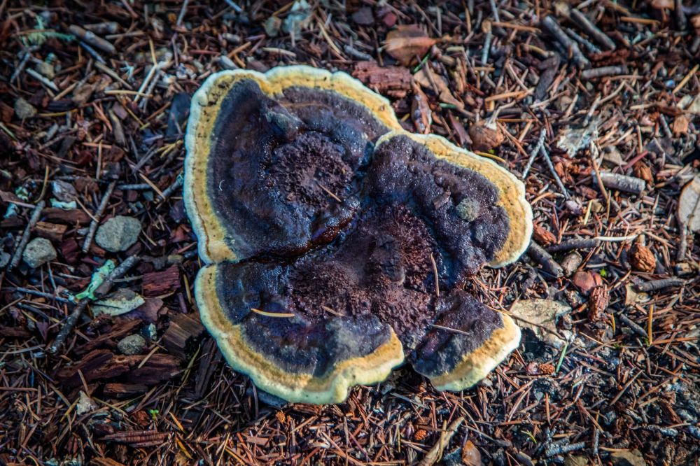 山里还和以往一样风景如画。没有秋景,满眼的葱绿,脚下是层层落下的枫叶,高大的苍松翠柏遮天蔽日,让人觉得仿佛身处仙境。这里天天如此漂亮。 在山中还看到了各种各样的蘑菇,但是没有人采摘,因为很可能是毒蘑菇。也看到了成千上万的ladybug贴在树上,自成一景。随着高度的逐渐提升,树木也越来越矮,松树都消失了,被橡树代替了。