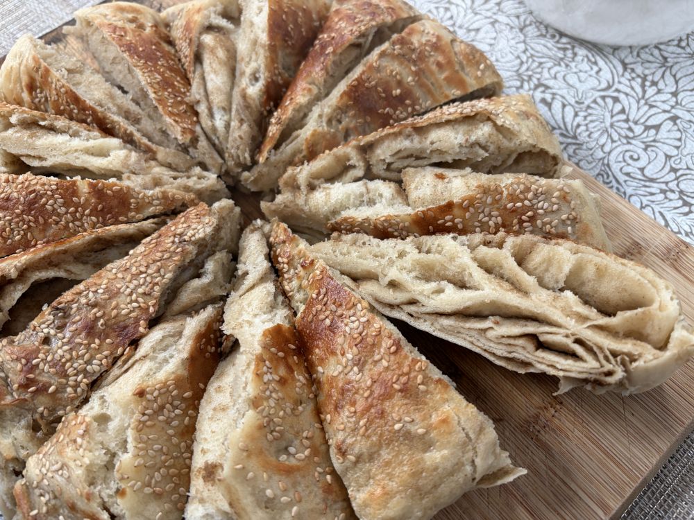 星期六的饼不够厚,星期天的饼面粉量加倍。两种做法都好吃,就是不太咸。