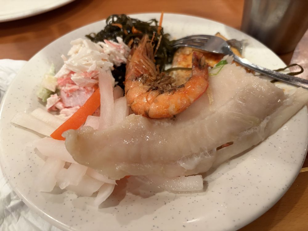 这是自助餐。其实我吃了还不止这些,不好意思告诉读者我吃了几盘子菜。明天不敢称体重了(′︿‵。)