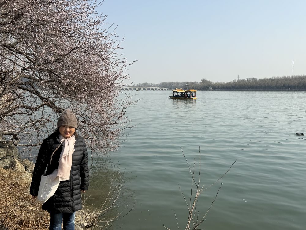 早餐结束后去颐和园散步,看到有一些大妈们穿着漂亮地拍照和视频。还看到了很多只天鹅在湖里游泳。颐和园正在准备春天的降临,桃李梨樱花都正在含苞待放,那时人会更多。