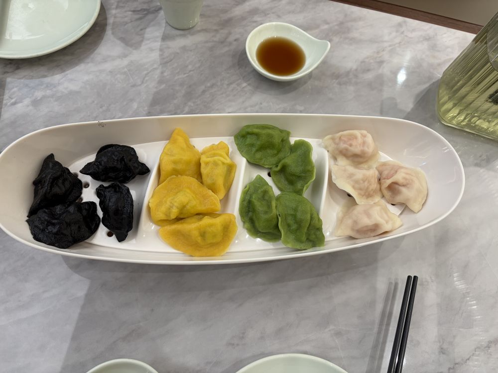 晚上吃的鱼肉水饺,墨鱼水饺,海胆水饺,黄花鱼水饺,韭菜鲜虾水饺。