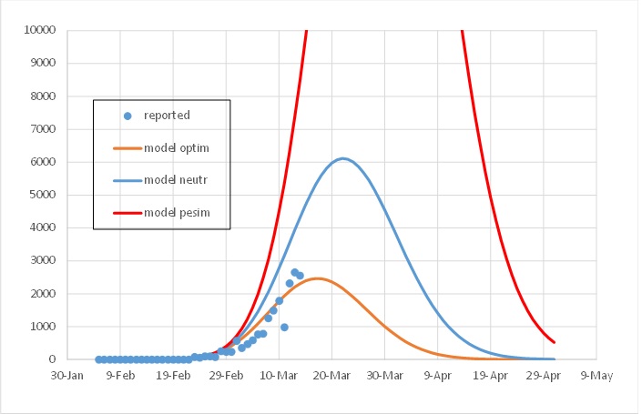 2。每日新增病例将在3月20日前后达到峰值(疫情拐点),每日3-4000新增病例。