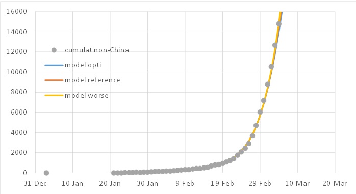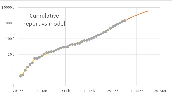 用中国国家卫健委公布的中国疫情数据(截至3月5日)与本人所做数模进行最新对比,另对中国以外疫情建模并用世卫组织公布的疫情数据进行对比,给出了中性和悲观乐观发展的预测。有专家曾指出,由于新冠病毒的不确定性,任何预测都是不可能的。所以下面的预测可能一文不值,但个人感觉模型跟疫情走向还是有很强的相关性,故此贴在这里供批评参考。