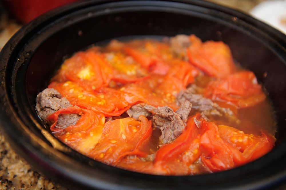 前一段跟风买了塔吉锅,试用了几次很喜欢。好处是快,牛肉20分钟就熟了。最常做的是这道番茄牛。