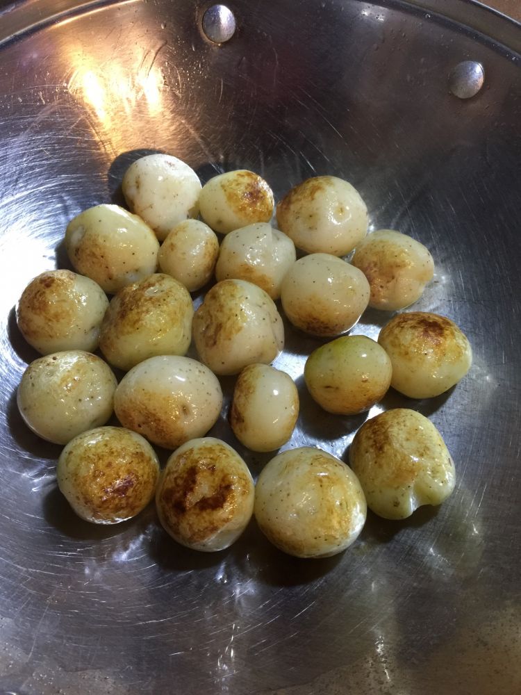 1: 买这红皮的小土豆,削皮(也可以不削皮,我不喜欢吃时厚厚的皮感),烧开水,加入适量多一点盐,放入削好皮的土豆。