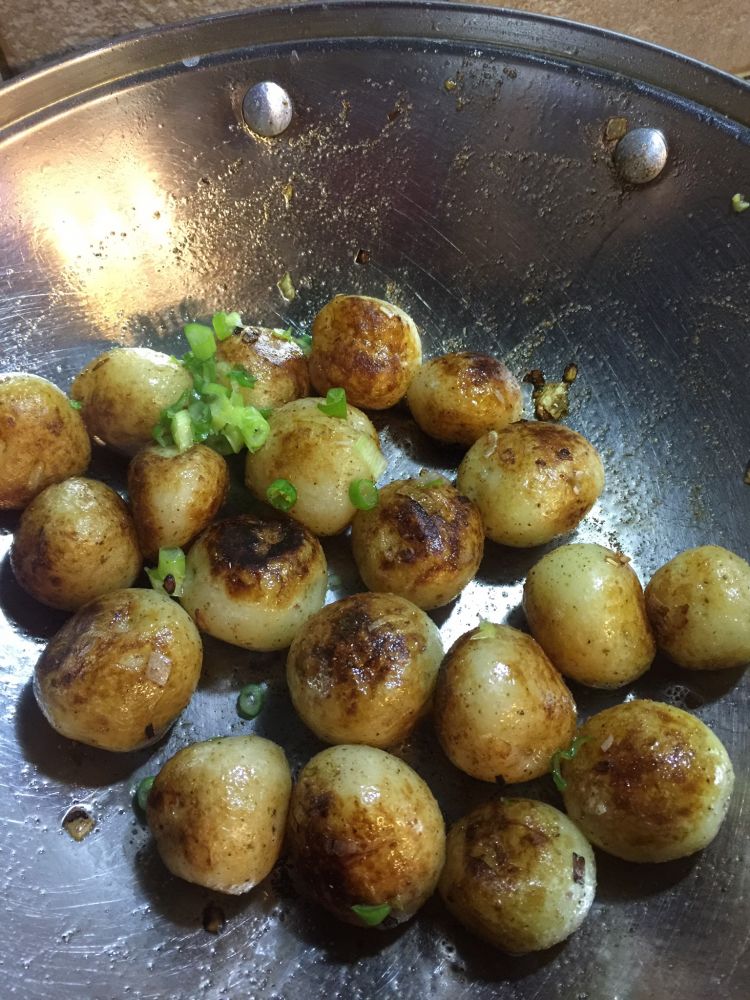 3: 用中火将土豆扁至焦黄,加入盐,花椒粉,葱花,炒至调味与土豆均匀,出锅。这是第一次贴这么多的图,请大家包涵,试着放一下吧