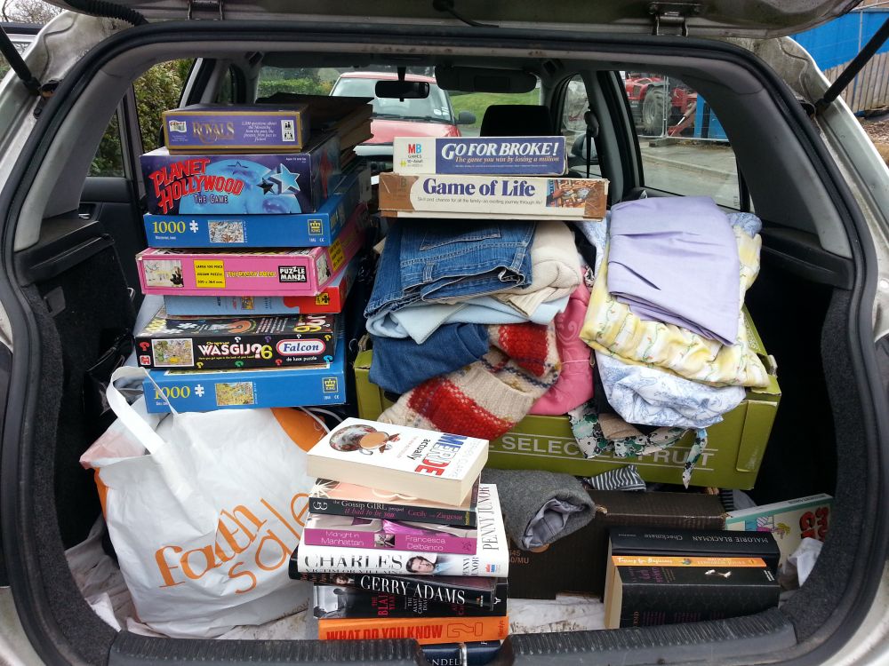 3一车一车的往charity shop送东西