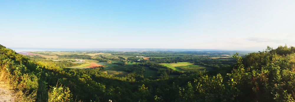 然后顺着101号路往北开,并行于Annaplois Valley (从Digby to Wolfville). 这里有美丽的田园风景,还有不少葡萄酒庄。可惜赶时间,没能到酒庄品品酒。终于在太阳下山前还是赶到Blomidon Look-Off, Canning, 从高处欣赏山谷美景。Cross the road from the Look-Off,有一家local的ice cream店,好吃得不亚于后来去的famous Cows,而且份量绝对慷慨。