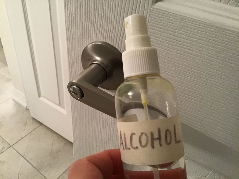 所以车刚停稳,猴妈立马窜下车,命令他们都给我在门外等着!拿着酒精冲着大门外锁外把手,内把手一通狂喷,又走进车库把屋门外锁外把手内把手狂喷!把鞋子和外衣扔在车库,蹑手蹑脚进屋,先把所有门把手全喷!酒精喷完了,再倒满!把楼上楼下所有电灯开关全喷!把所有水龙头喷!再把扶梯一溜地喷!拽出酒精湿巾再楼上楼下把所有喷过酒精的地方抹一遍!还没完,又把配好的漂白水用大喷壶装了,左手提着喷壶右手拿块抹布,再把所有的门框,门把手,楼梯扶手,椅子靠背,床角,桌角,所有可能被人摸过的地全都用漂白水消毒一遍!……