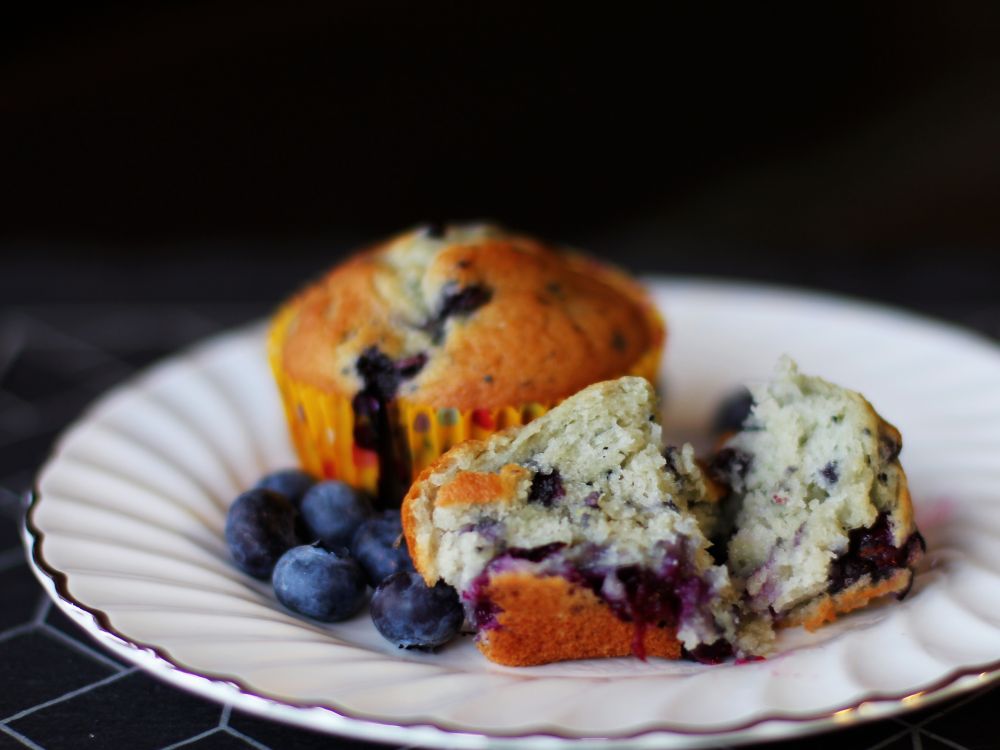 Blueberry Muffin 我加了新鲜蓝莓,拍照很好看,但吃起来孩子们都嫌酸不爱吃 :)