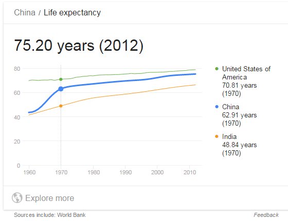 I happened come across this images. Using US and India as "upper and lower" range, China data moved away from lower range and moved up quickly 1960-1970, then slowly approaching the upper limit.