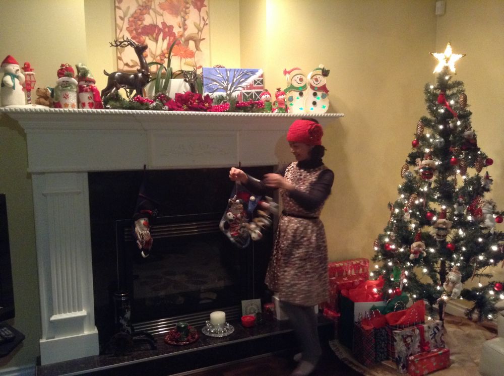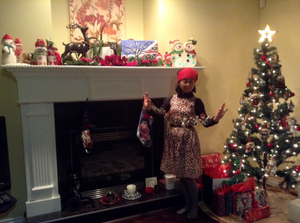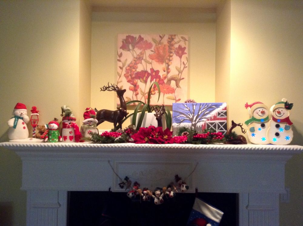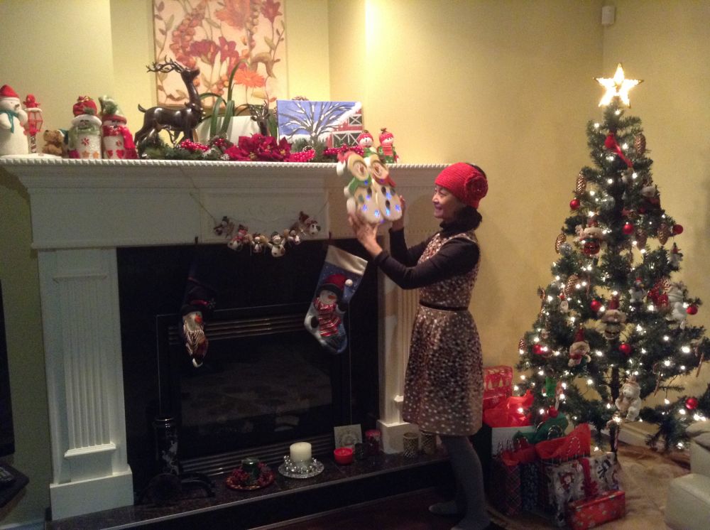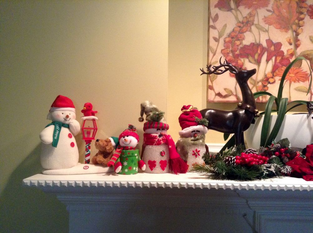 多年收藏的各色宝贝,snowman, reindeer, candle holder, 等等,一一掏出来: