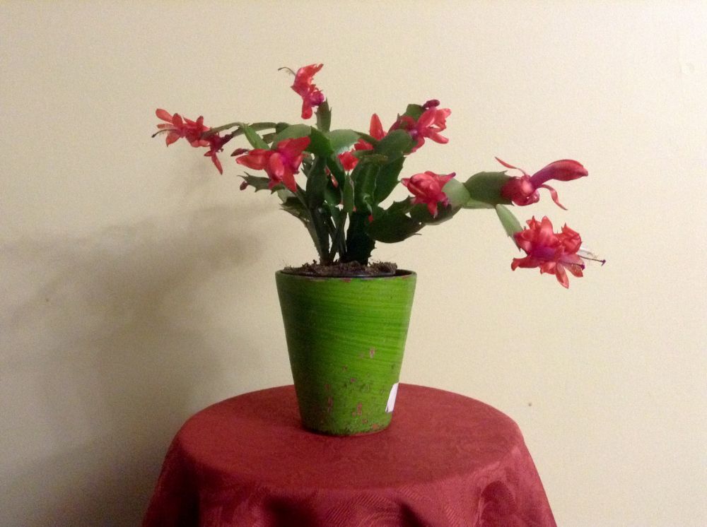 今年是流行蟹爪兰吗?Walmart里$4.99/盆,买来配上一个旧花盆,就是真正的Christmas cactus啦!