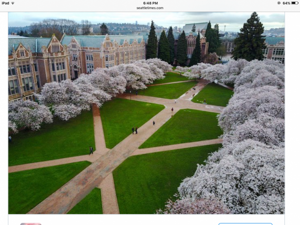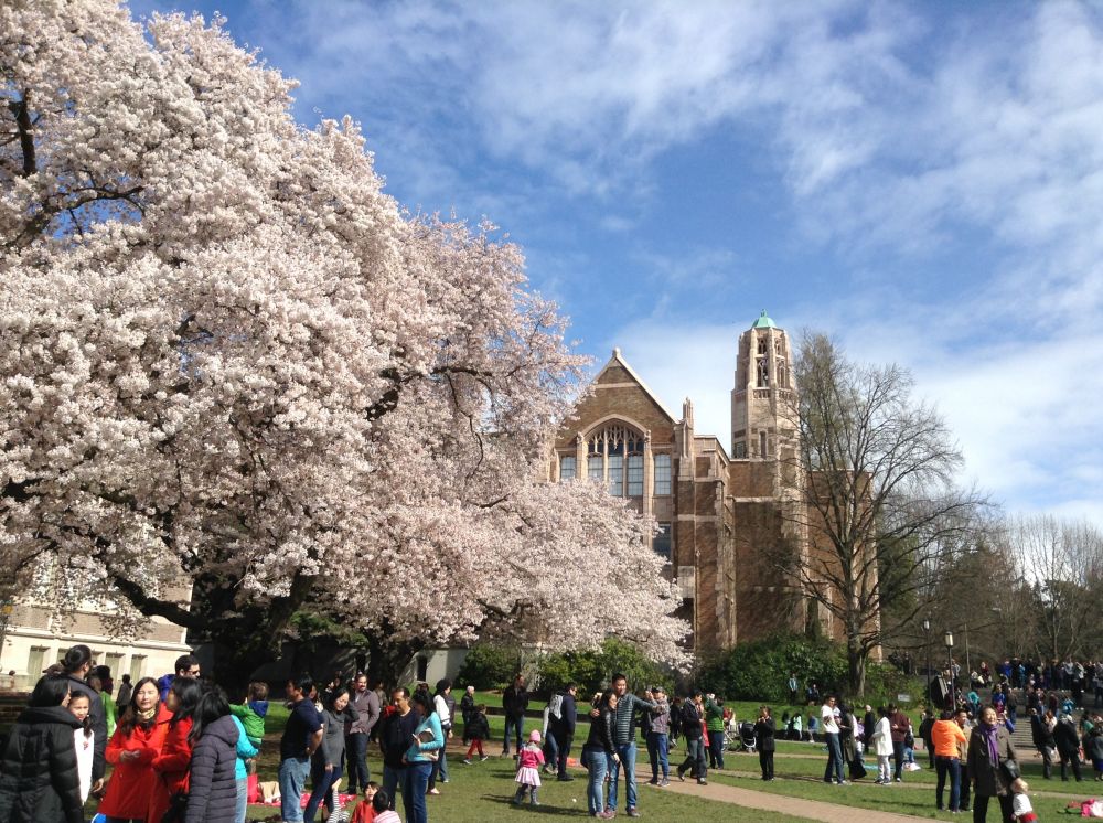 4月初,温哥华的樱花还在冰雪的肆虐下静默着,我们驱车去拜访近邻华盛顿大学的樱花:
