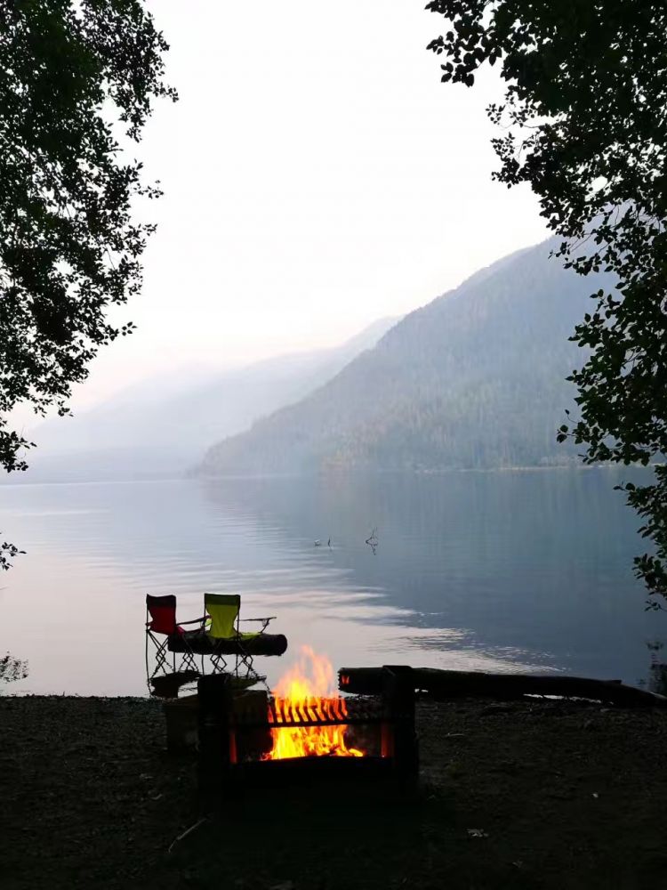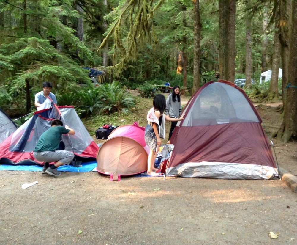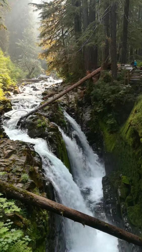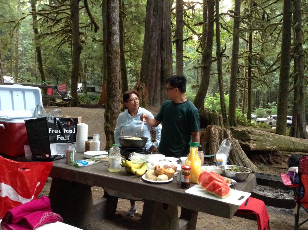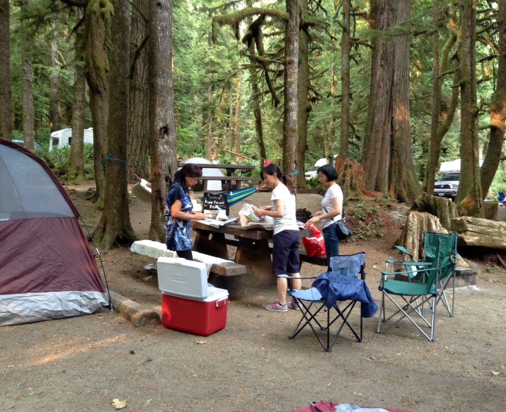 在这个世界上为数不多的温带雨林里露营,没有WiFi,没有电话,一夜无梦,酣畅淋漓!第二天早晨七点,已有勤快的小伙伴们把早餐做好了,面条、鸡蛋、马芬,还有半个西瓜!撤篷,走人,不到八点就进入了Sol Duc Hot Spring Resort。