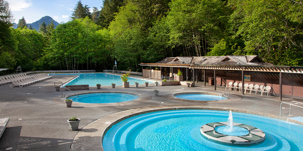 远远地,就闻到了浓浓的硫磺气味!Sol Duc Hot Spring Resort里面有大、中、小三个mineral pools,温度分别是38、40、37摄氏度,还有一个freshwater pool。