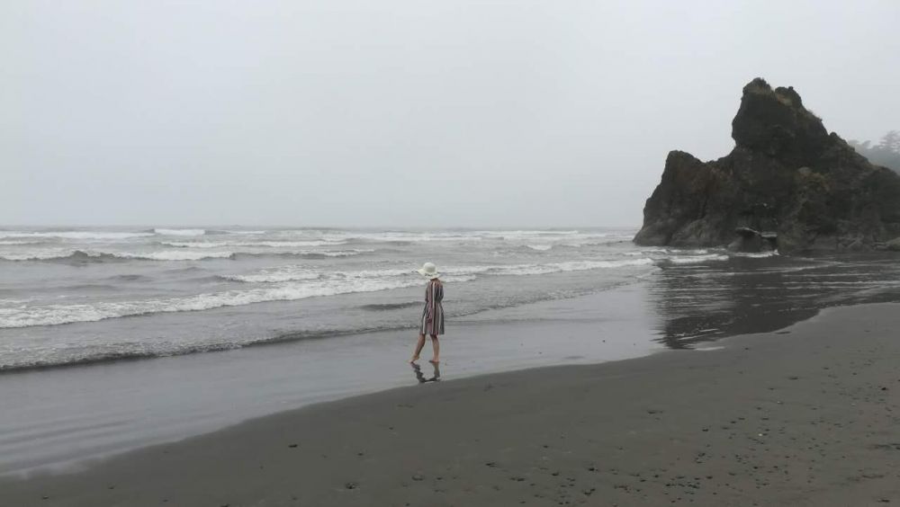 沙滩上的沙,非常细柔。可惜天气不好,我们没有多逗留,三辆车沿着Hwy 101南下,到达我们的下一个目的地 -