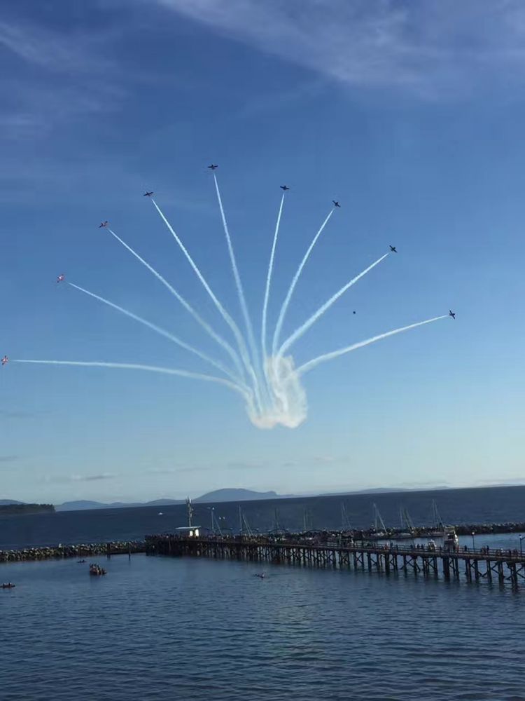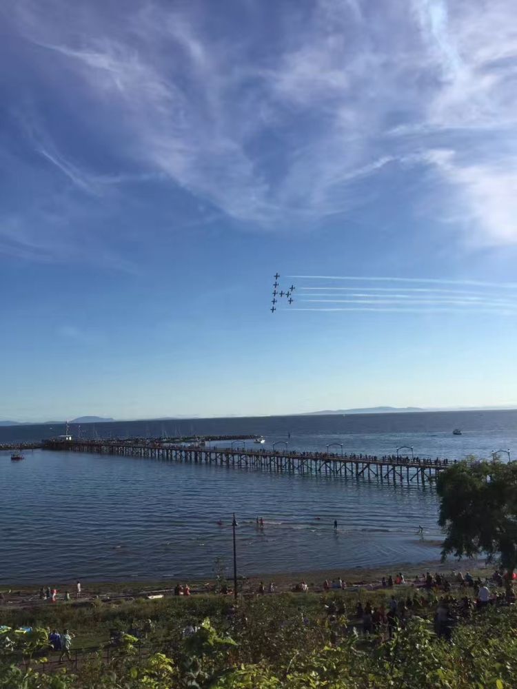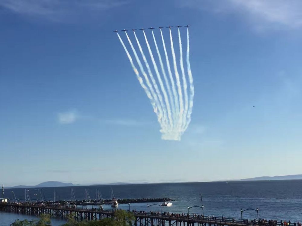 为庆祝加拿大建国150周年,昨天,在美丽的白石海边,加拿大空军雪鸟飞行表演队(The Snowbirds)的精彩呈现,使得秋凉似水的夜晚顿时沸腾起来了!