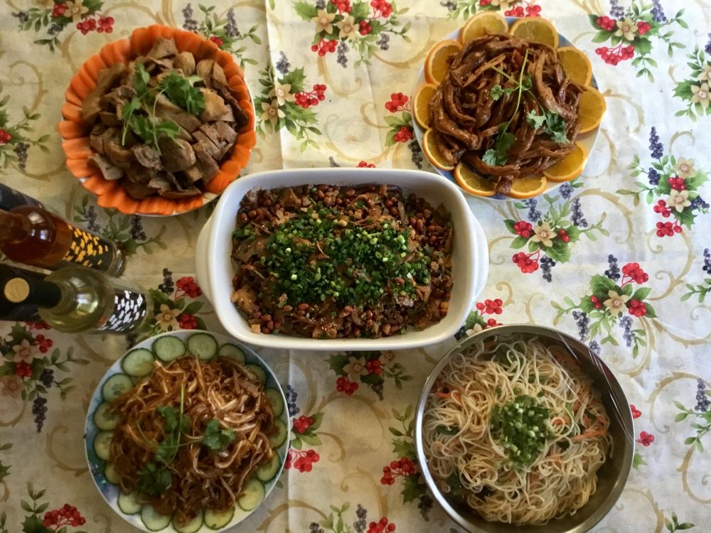 婆婆的拿手菜很多,这次做了猪头肉、卤猪耳、卤鸭爪、大肉包、四川凉面、莲子银耳羹: