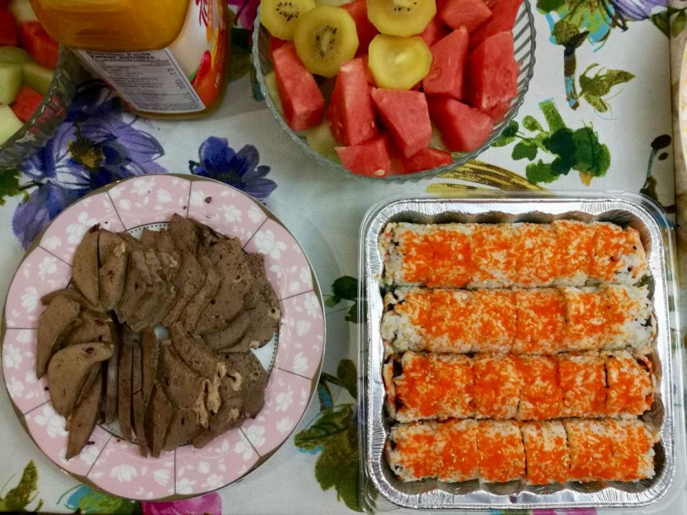 下午五点过后,朋友们陆续来到,都带来了自己的拿手菜: