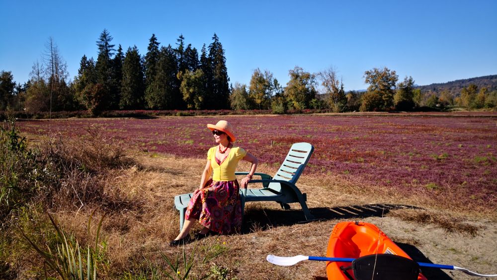 金秋十月,也是小红莓(cranberry)采收的季节。这是一种只适应凉爽地带酸性泥炭土壤、生长在矮藤上的小浆果,全世界只有美国、加拿大、智利等有条件生长,故有“北美红宝石”之称。采收前夜,果农先在田里灌满水;第二天,果农雇佣的工人穿着皮衣皮裤,在水中开着收割机,把成熟的果子从树枝上打下了,果子就漂浮到水面上。随着工人的作业面积扩大,漂浮的小红莓将整片农田覆盖成红彤彤的一片,宛如红海一般壮观!今年我们去早了,红莓地里还没灌水;但是禁不住田园风光的吸引,还是兴致勃勃地拍了一些照片: