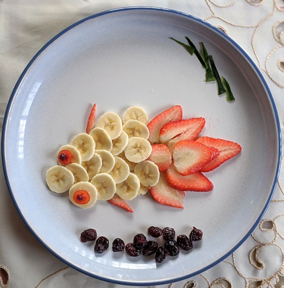香蕉、草莓、蔓越莓干, 可以多叠加两层,让她更加丰满圆润一些