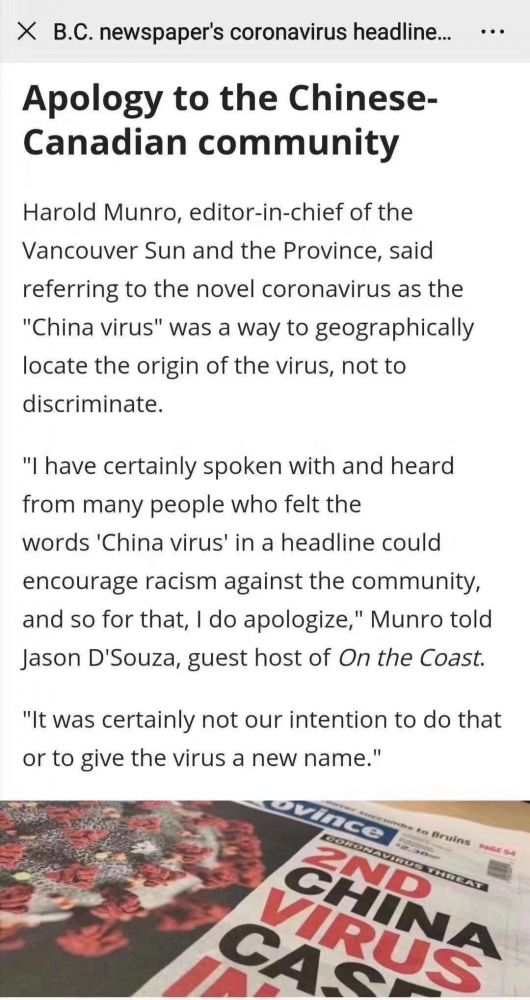 迫于大温华人的一致抗议,省报主编为将新冠病毒称作“China virus” 向华人道歉了!再次证明鲁迅先生所言不虚:“不在沉默中爆发,就在沉默中灭亡”!