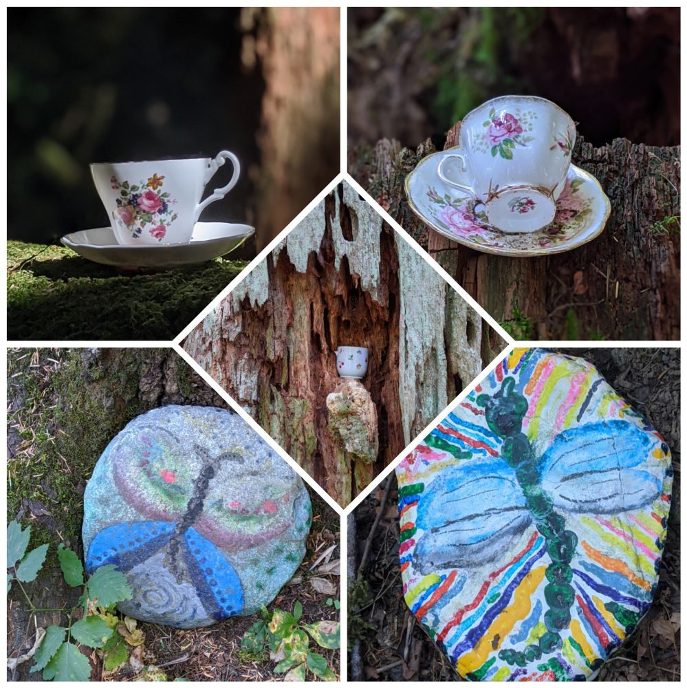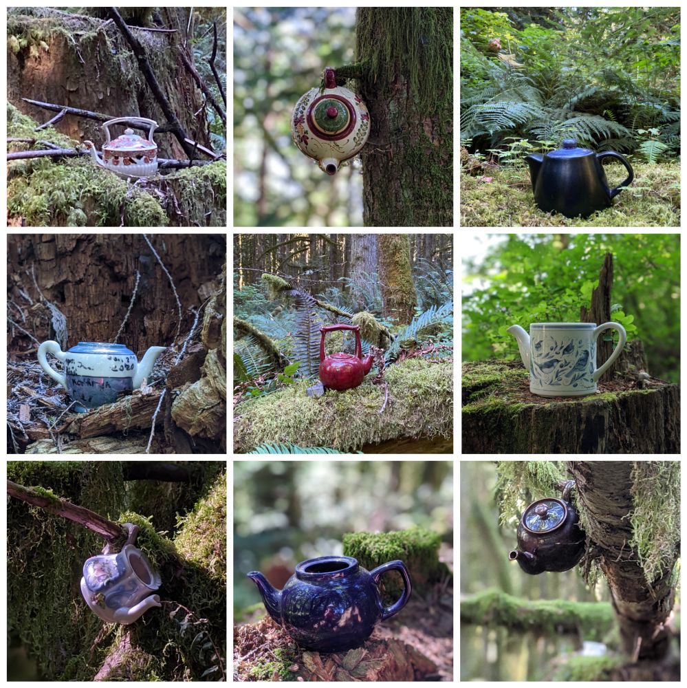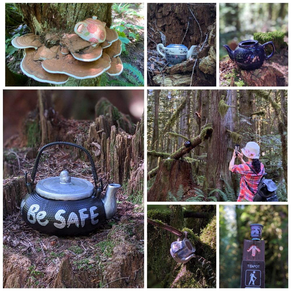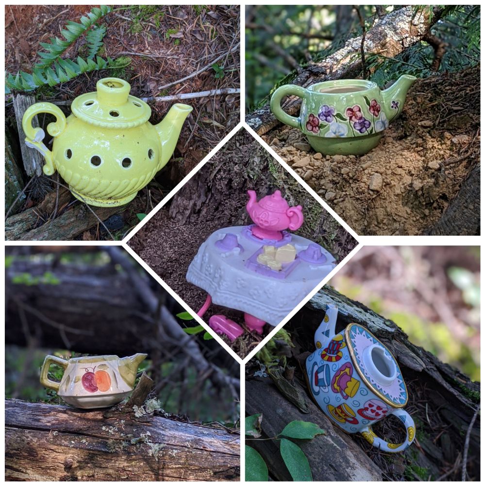 几年前第一次去茶壶山,看到树洞里、树墩上、或者树枝上藏着、摆着、挂着的茶壶时,觉得有点spooky!今天再去,感觉截然不同了!不但爬山找壶乐此不疲,而且自己也带了一把小壶,入山随俗,挂在树枝上了!