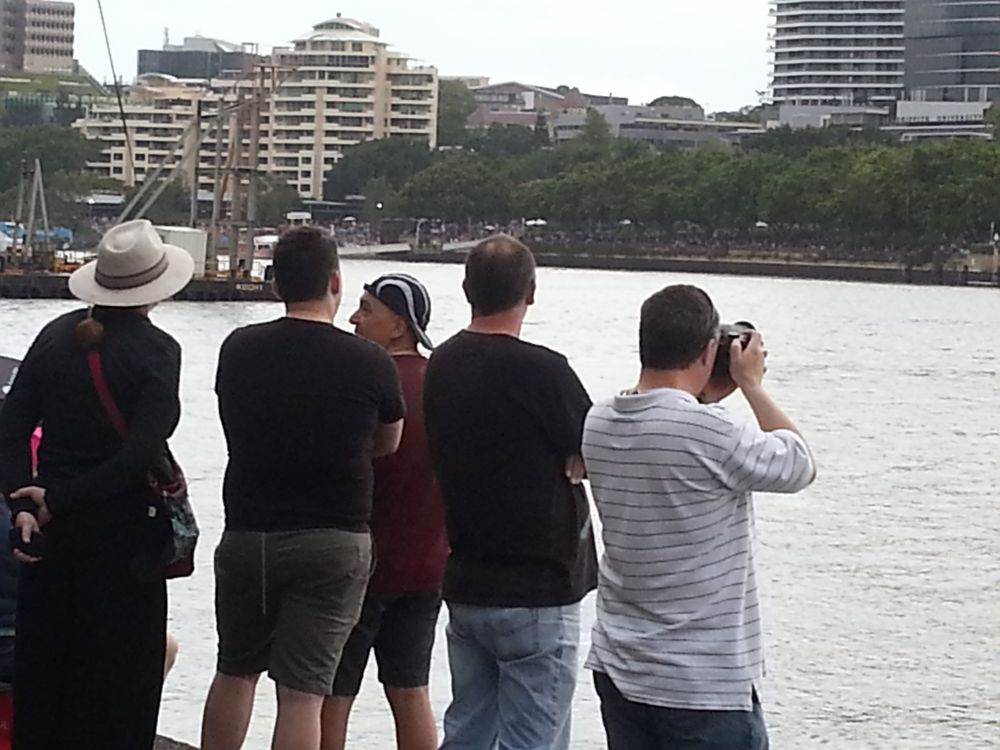 布理斯班河市中心段两岸近百万观众,所处之地,从进场等候到结束退场的五个多小时里,场面热烈,秩序井然,环境整洁而令俺印象深刻,退休镇长也感叹不已说道:“这里的人确实是守规矩,讲卫生,在我们老家那是不可想象的,起码要派几千个人第二天来打扫卫生!”