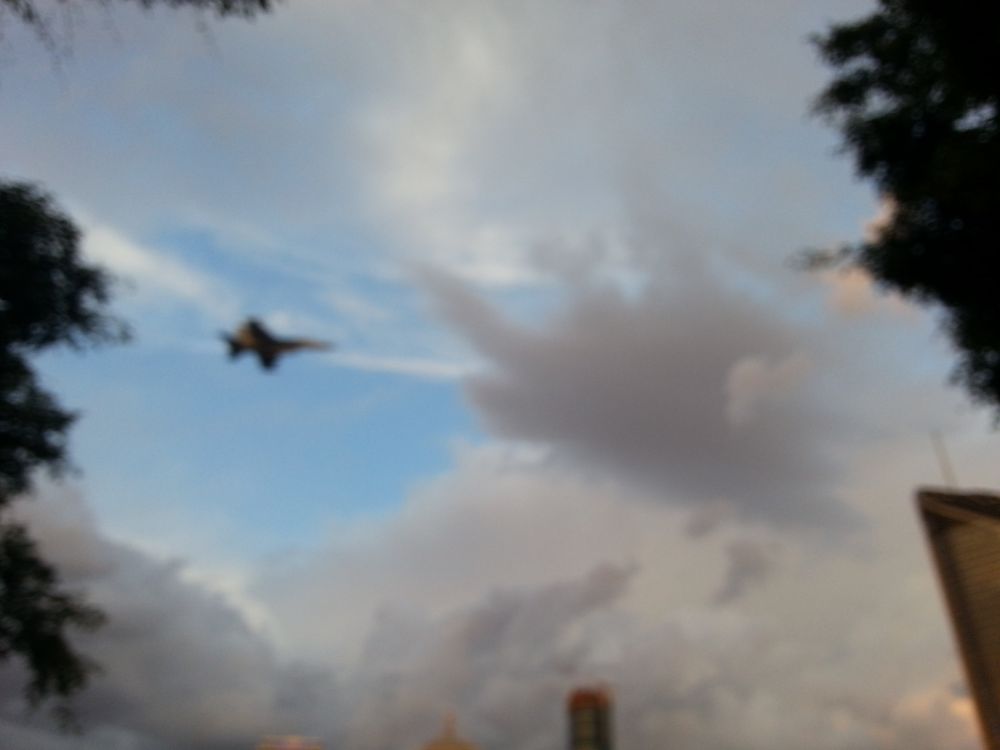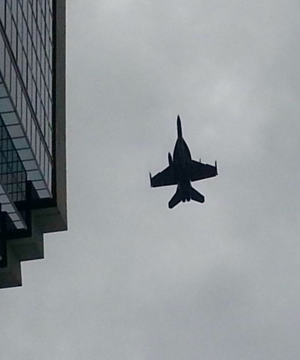 4点10分特技飞行表演准时出现, 5点25分EA-18G 咆哮者战斗机以雷霆万钧之势,夹带震耳欲聋之轰鸣声,低空掠过市中心上空穿插在高楼之间后,突闻一片孩童、婴儿哭声此起彼伏。受惊吓的孩子们放声大哭,真是别有一番“趣味”令俺感叹不已而陷入深思。几个会自我保护的年轻人还用双手掩耳,以减轻声波刺激。