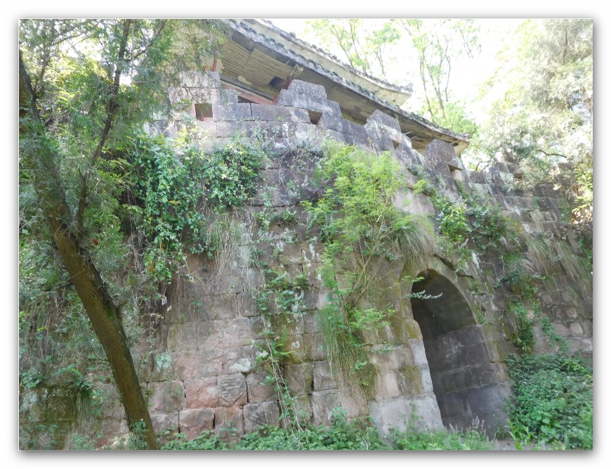 护国门,是钓鱼城八座城门中最为宏伟的一道险关,位于城南的第二道防线上,左倚悬崖绝壁,右临万丈深渊的嘉陵江,上书“护国门”和“全蜀关键”。据说,当年曾施以栈道出入,靠“过河拆桥”的方式通行(去时修复栈道,返回即拆掉),是扼守城内外交通的重要孔道,宋蒙双方在这里经历了上百次惨烈的战斗,但此门一直未被攻破,不愧是“一夫当关,万夫莫开”的雄险之地: