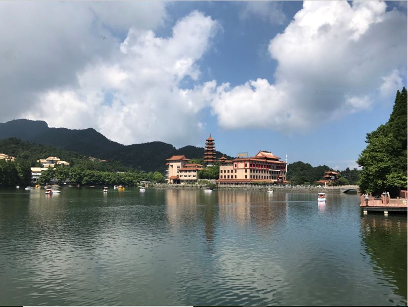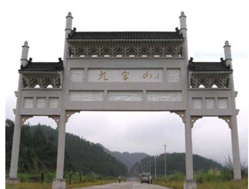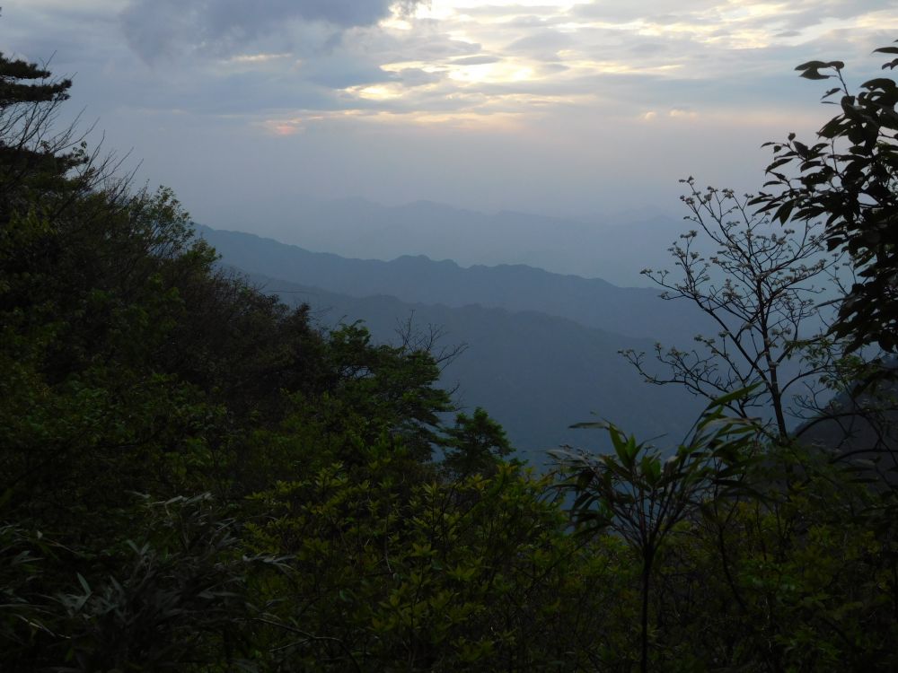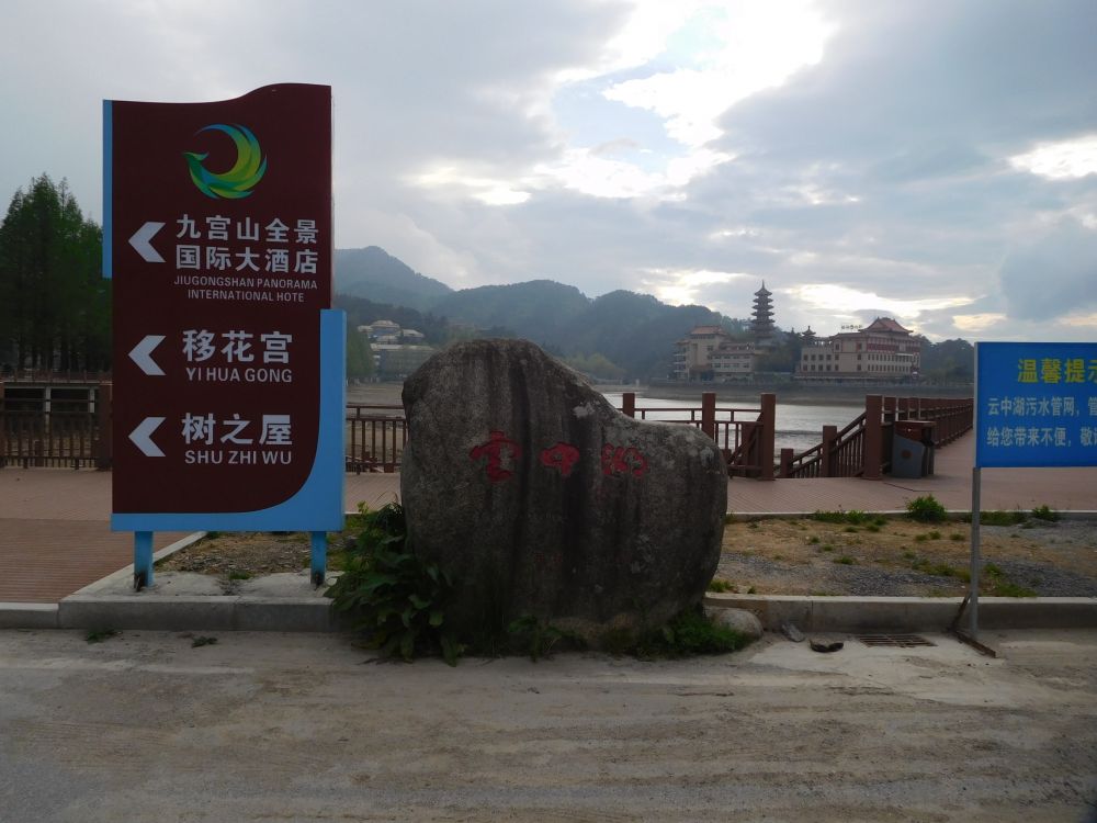 回头再来介绍通山县九宫山。它是一座道教名山,远非通城县城郊那座小小的罗公山可比。景区内奇峰耸立,幽谷纵横,有奇松怪石、云海温泉和瀑布,李自成墓位于九宫山西麓牛迹岭小月山上。九宫山的名气远不如庐山和武当山。从通山县城每天只有两班车上山,乘客多为山民。我们是 4月底旅游淡季上山的,车上有一队上山建风力发电站的民工。坐在我隔壁的一位民工告诉我,每天能赚300块钱。没有星期天,活有的是,想干多久干多久。班车的终点在山上云中湖畔瑞庆宫前小广场。这里有如庐山上的牯岭街,是交通和住宿中心。