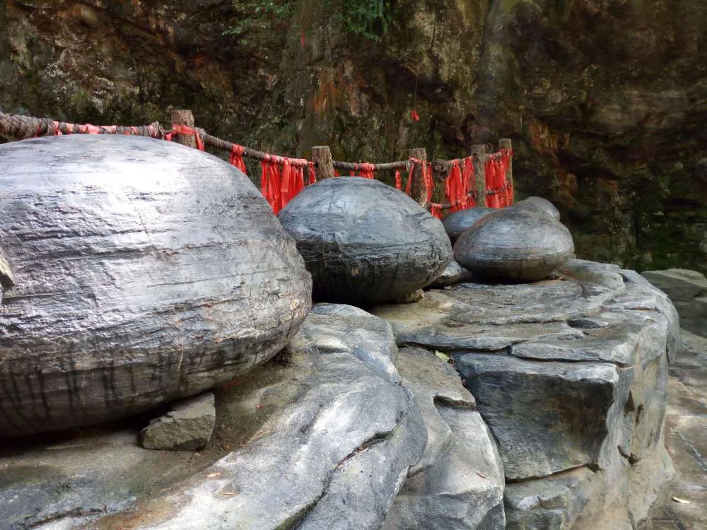 下蛋崖。据说每30年就会下一个蛋, 至今村中保存着历代产下的“石蛋”68颗。形态似恐龙蛋,有橄榄球大小: