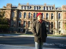 我们是在2015年12月30日通过旧金山——奥克兰的海湾大桥,到达伯克利并住在伯克利的。31日上午8点左右就前往伯克利校园,在那个很有特色的长满铜锈的大门外照了相,之后在校园转悠了大约一个小时。从学校的整体外观上看,加州四所名校的校园,斯坦福最受看,UCLA其次,伯克利第三,稍欠气派的是加州理工学院。